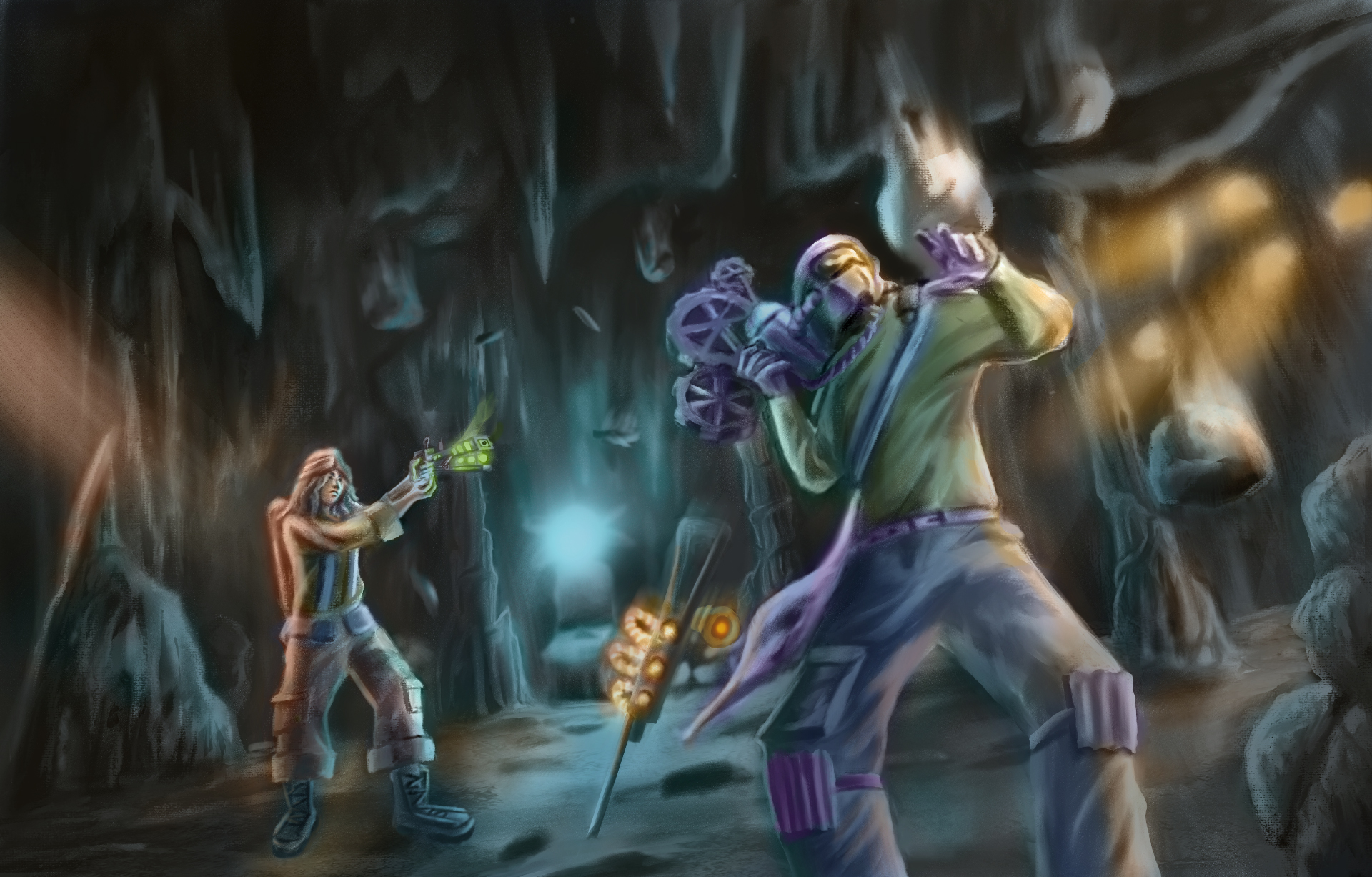 A selection of illustrations for an original story about a modern twist on Treasure Island in a steampunk setting titled “The Core”.